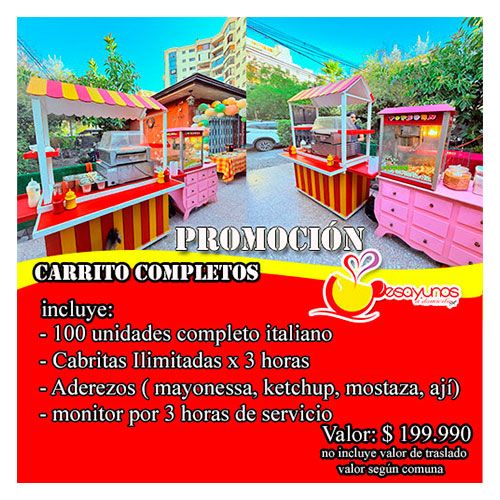 carrito de completos con atención personalizada incluye todo lo detallado